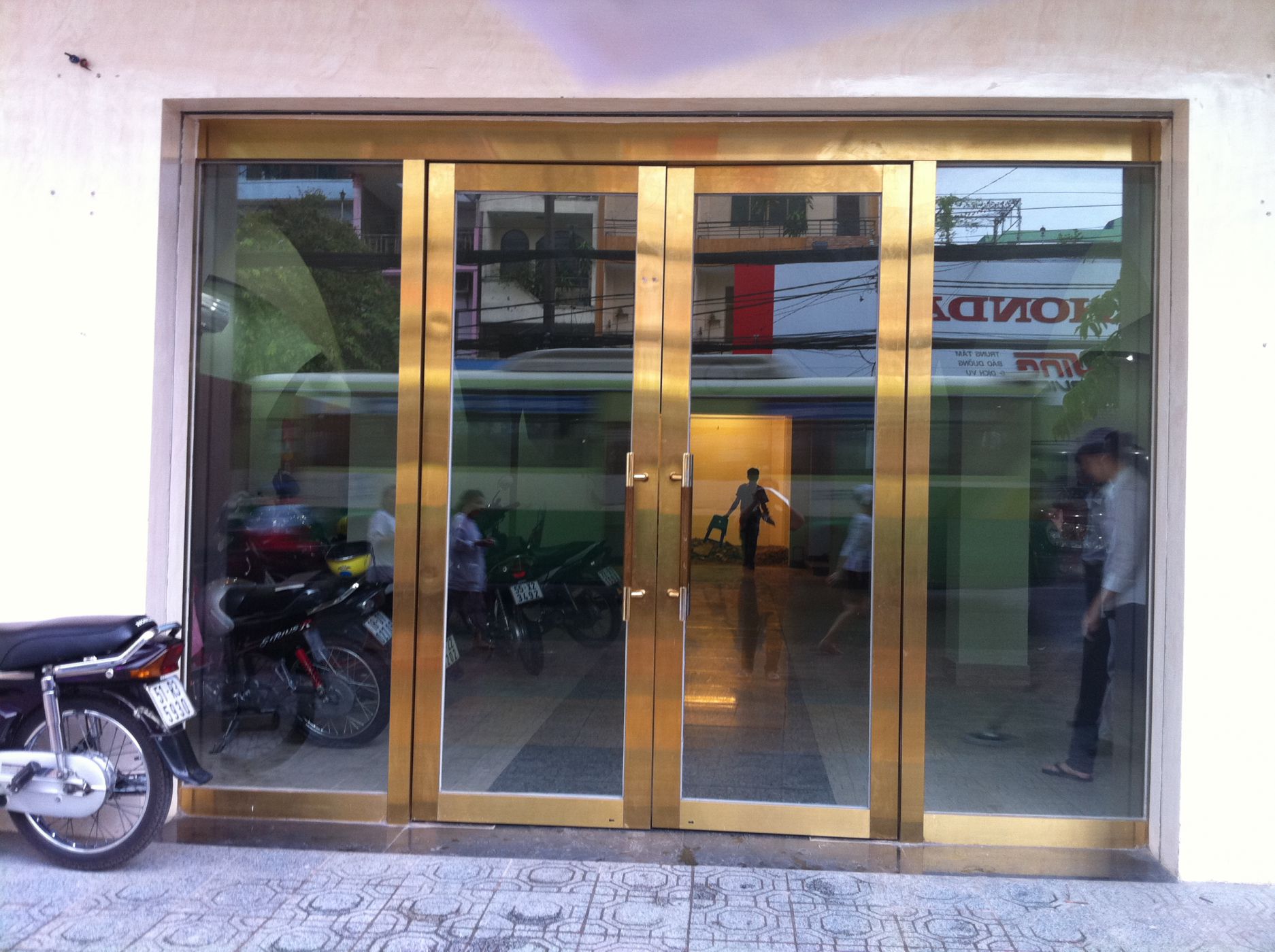 HỆ CỬA ĐI BẢN LỀ SÀN - CỬA INOX VÀNG SỌC HL